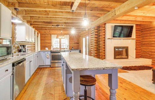 Peaceful, spacious, and packed with family-friendly amenities, this 3-bedroom, 3-bath vacation rental is ready for your next lakeside adventure in Midway! Start your morning with breakfast in the fully equipped kitchen, then spend your day fishing off the dock, lounging by the deck, or taking a dip in the pool. When you're ready to venture out, take the 31-mile drive to Savannah for city fun. Afterward, return to the log cabin and gather around the fire pit for s'mores. Book now!