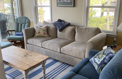 Updated and a stone's throw to the water's edge. Home features 2 bedrooms upstairs (1st floor den with sleeper sofa could accommodate overnight guest) and 1.5 baths, hi- speed internet, washer/ dryer, dishwasher, cherry floors, Brazilian granite countertops, outside firepit, spacious dock, paddle boat, kayaks, and more. Sandy/ pebbly gradually deepening waterfront. Lake is spring-fed approx 3 miles long and 1.5 miles wide. Connects to Crescent lake via the Tenney River. Minutes to Windham and approx. 40 mins to Portland.