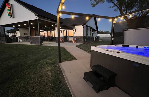 Spacious Lakefront Paradise with Dock, Full-Sized Pickleball/Basketball Court with night lights , fire pit, a walk-in waterfront area and an Outdoor Kitchen Patio. Only 6 minutes from Rocker B Ranch. **Second house on property also available for rent, inquire for details.**