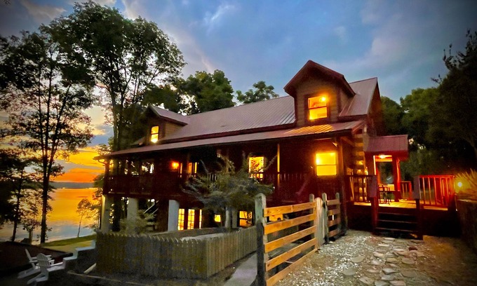 The cabin is surrounded by beautiful hardwood trees with lakefront views, lake access and spectacular sunsets views. It’s location gives easy access to boating, fishing, hunting; deer, boar & duck, hiking, shopping, and dinning, all the while, affording you the ability to retreat back to the solitude of this 3 level spacious home with comfortable beds, large sectional sofa, and a large smart TV . Whatever you decide to do; stay in and enjoy the tranquil surroundings on the wrap around porch or go out to engage in outdoor activities, you will fully enjoy your stay at Don Quixote Lakefront cabin.