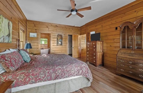 Lakefront Luxury Log Cabin - Hot Tub, Pickleball Court, Fire Pits, 2-Story Dock! is located in Dixie - Berryhill. Lakefront Luxury Log Cabin - Hot Tub, Pickleball Court, Fire Pits, 2-Story Dock! provides accommodation, featuring Parking, Sports/Activities, Wellness Facilities, among other amenities. This Cabin features Parking, Sports/Activities, Wellness Facilities, to make your stay a comfortable one.