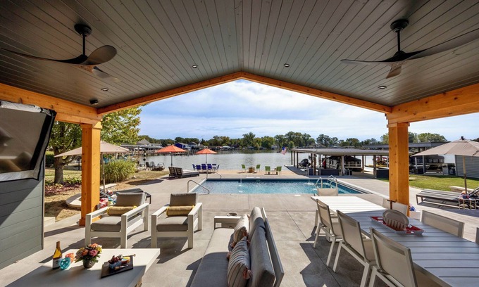 Lakefront Luxury: Sunrise Views, Pool, Dock & Walk to Dining! | House in Huntsville
