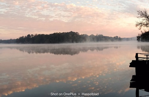 Deluxe 30 foot geodome on the tip of a narrow peninsula 45 miles south of Atlanta on High Falls Lake. Glam meets camp- King custom DUX bed, 4 seasons sheets- heated porcelain floors- wrap around deck with sunrise and sunsets, moon rise and moon sets! An outdoor kitchen has county hot and cold water and granite countertops- full fridge w/ freezer , microwave, hot plate, toaster oven, induction cooktop- green egg grille with bricketts and gas grill with propane. The expansive deck has teak furniture and a propane firepit near the hot tub. An additional real wood fire pit is at the very tip of the peninsula. a pair of kayaks and paddleboards as well as a paddleboat are available for use.