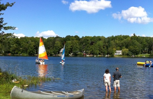 The lake is a 200 foot stroll from your front door. The water is clean and the swimming and fishing is great. We provide a variety of boats for our guests, life preservers plus more. There are no motor boats allowed.
