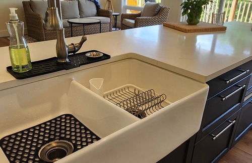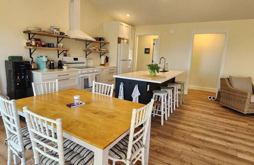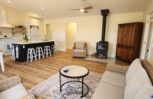 Seating at the central kitchen island means you can chop, slice, mix, and stir as you make meals together over old stories and drinks. The indoor table seats up to 8 adults comfortably as does the oversized picnic table in the screened-in porch. Full kitchen (no dishwasher - may we suggest a game of dice or cards after dinner to see who does the dishes?), BBQ, microwave, fridge, oven and stove, Keurig & Nespresso original, milk frother, toaster, etc. Ceiling fans in every bedroom and in the main area of the cottage cool things down in the heat, and a wood burning fireplace warms things up on a cool evening. Plenty of cozy locations with a stellar view to curl up with a cup of tea or a coffee and a good book.