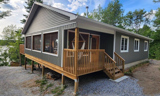 Lakefront, treetop, cottage Immerse yourself in a panorama of nature is located in North Frontenac. Lakefront, treetop, cottage Immerse yourself in a panorama of nature provides accommodation, featuring Parking, TV, Balcony/Terrace, among other amenities. This Cottage features Parking, TV, Balcony/Terrace, to make your stay a comfortable one.