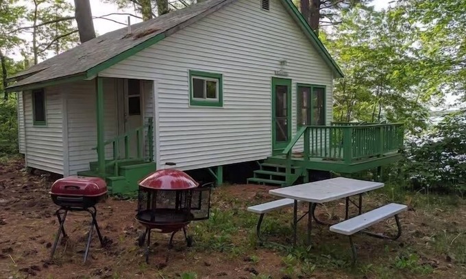 Part of the Camp Hawthorne Cottages, Beachside offers the ultimate lakeside experience, sitting just steps from the sandy beach with a short trail through the blackberry bushes leading right to the water. This cozy retreat features a screened porch and a deck, perfect for soaking up the lake breeze and enjoying the peaceful surroundings. Inside, the bright pine walls and a recently updated kitchen and bathroom create a warm, inviting space. Modern comforts include a 55" smart TV and fast Wi-Fi, though with the beach so close, you may find yourself spending most of your time swimming and relaxing by the water.