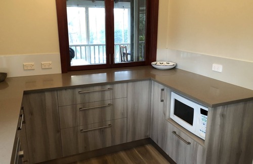 A wood fire is ready to quickly warm the cottage on those cool nights after a relaxing hot spa on the enclosed verandah.