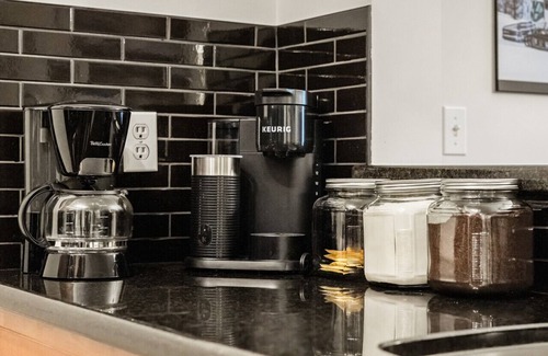 - Stocked with coffee, tea, salt, pepper and all your basic condiments.