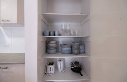 Open-Plan Living: Bright lounge + fully equipped kitchen (oven, microwave, cookware).