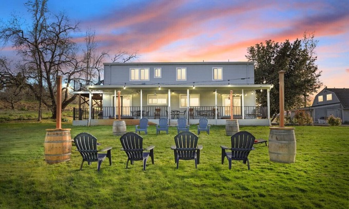 Sip, savor, and stay at our luxe 5BR, 5.5BA Airbnb in Amador wine country! Stroll to Rombauer, revel in vineyard vistas, and unwind in themed rooms. Gourmet kitchen, game room, and lakeside views await on 40 acres of bliss. Book your vineyard escape now!