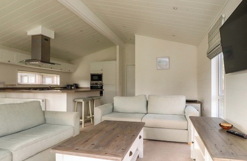 Lakeview Lodge in Forton near Garstang, sleeps four guests in two bedrooms.