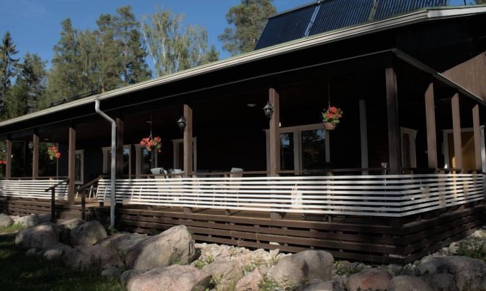 Location suitable for groups and families used to a high standard. Furnishings and colours professionally designed for harmony. On owner’s land (100 hectares), area has good jogging and berry-picking terrain. Airport for private aircraft at Halli 12 km, Isojärvi National Park 20 km, Mänttä Town of Art 36 km, Jämsä 24 km, Himos ski resort services 28 km (e.g. downhill skiing, golf, dance restaurant), Tampere 70 km.