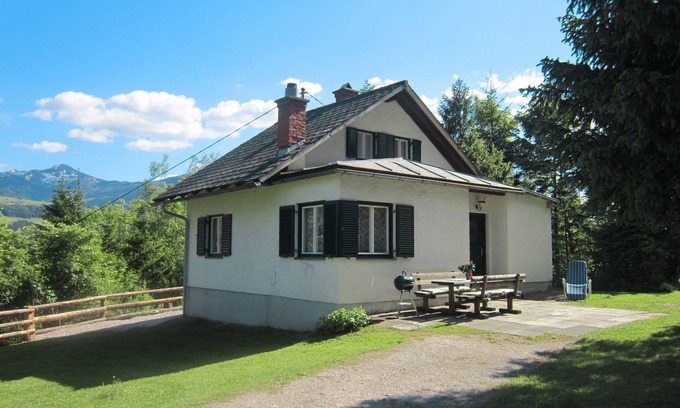 St. Martin am Grimmig 5 km from Öblarn: Small cottage "Grüne Oase", 700 m a.s.l detached. In the district of Diemlern 5 km from the centre of Öblarn, 2.5 km from the centre of St. Martin, 29 km from the centre of Schladming, in a quiet, elevated position on a slope, in the woods. Private: large garden 2'000 m2 (fenced) with meadow. Children's playground (swing). In the house: storage room for skis. 300 m long bumpy motor access to the grounds (via unmade road). Stepped path to the house. Parking (for 4 cars) on the premises. Shop 1.5 km, supermarket 3.5 km, restaurant 250 m, bar, bus stop 250 m, railway station "Niederöblarn" 3.8 km, outdoor swimming pool 2 km, thermal baths "Grimming Therme" 22 km, bathing lake "Putterersee" 12 km. Mountain railway 21 km, ski lift 21 km, ski bus stop 300 m, cross country ski track 5.5 km. Nearby attractions: Schloss Trautenfels 6.5 km. Well-known ski regions can easily be reached: Hauser Kaibling 21 km.
