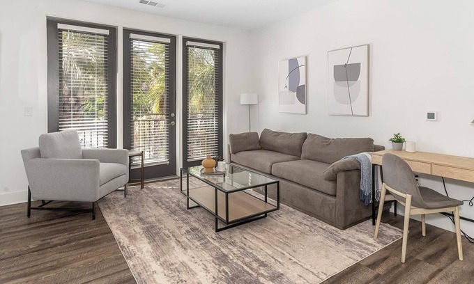 Just minutes from San Marco Square and a short drive to the beach, Barlow is your ideal flexible stay in Jacksonville. Our fully-furnished apartments feature full kitchens, smart home tech, and spacious balconies overlooking a resort-style pool. Perfect for monthly or extended stays, enjoy in-home workspaces, high-speed internet, a 24/7 fitness center, and walkable access to top dining, shopping, and cultural spots like the Cummer Museum and Riverwalk.