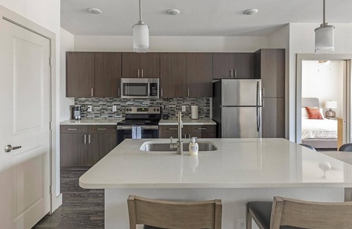Stay in the heart of Midtown Park, Dallas, just minutes from Downtown, NorthPark Mall, and some of the city’s best shopping, dining, and trails. The Mark at Midtown Park offers fully-furnished apartments perfect for flexible stays. Enjoy full kitchens with quartz countertops, spa-inspired baths, and oversized balconies. Unwind at the resort-style pool with cabanas, or stay active in the TRX-equipped fitness center.