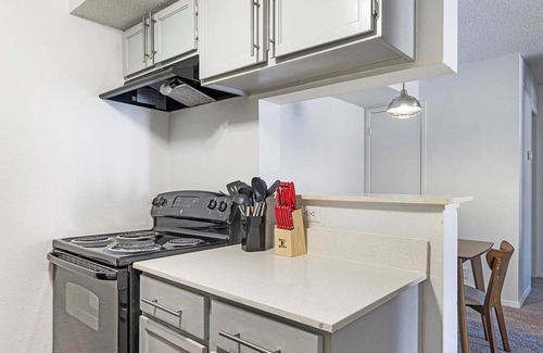 Make yourself at home in Austin’s vibrant Mueller neighborhood at Mueller Flats. Ideal for short getaways, extended stays, and everything in between, our fully-furnished apartments feature full kitchens with quartz countertops, hardwood-style floors, and private patios perfect for soaking up the Texas sun. Enjoy two sparkling pools, a 24-hour fitness center, outdoor lounges, and a bark park.