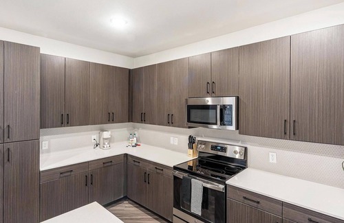 Indulge in luxury at Lyric at the Merc in San Antonio, TX. Our prime location on the Northwest side of the city places you near top dining, shopping, cultural hotspots, and scenic hill country escapes, offering the best of both urban living and natural beauty. Inside your fully-furnished apartment, you'll find everything you need for a seamless stay: a complete kitchen, generous closet space, and a laundry room with a washer and dryer.