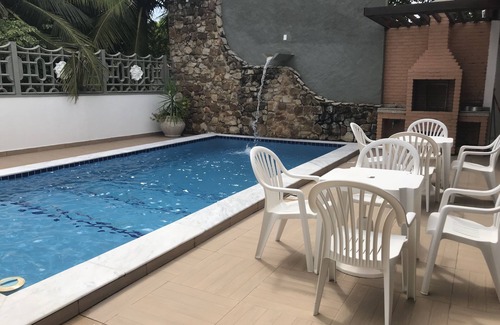 In our structure we have complete furniture in all environments of the house. In the rooms we have beds with excellent mattresses with ample closets and wardrobes, in addition to air conditioning in four of the five rooms, we also offer bed and bath linen. In the kitchen you will find appliances such as stove, refrigerator, microwave, blender, water ice, pots, dishes, plates, cups, cutlery and basic utensils for day to day use. In the service area we have a tank and clothesline. In the house we also have a private area with large wooden table, barbecue, excellent pool, shower and social bathroom.