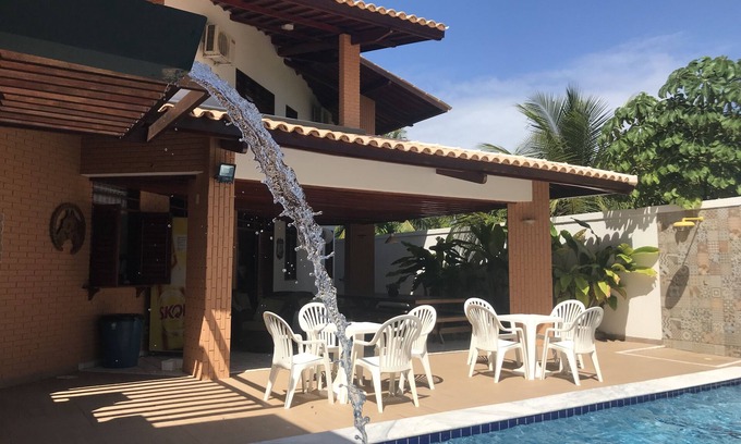 Our beautiful house is in the best location of the paradisiacal beach of Barra de São Miguel, being in the block of the beach. The house has 5 suites, two on the ground floor and three on the upper deck, living room, dining room, outdoor recreation area, kitchen and service area equipped to receive you with every comfort you deserve.