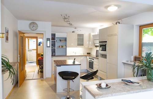 Experience the perfect home for 4-6 people with breathtaking views of the Wilder Kaiser. The 104 square metre apartment on the ground floor offers 2 bedrooms, an inviting living room with pull-out couch, bathroom with shower and bathtub. The spacious kitchen with dining table creates a cosy meeting place. The garden invites you to linger in summer and winter. The connection to the village and mountain railways is by bus, the village can be reached on foot in 10 minutes