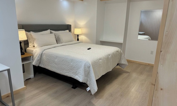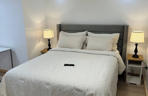 Big bedroom, private attached bathroom, brand new with excellent queen size bed. High speed internet, smart TV. Very safe area.