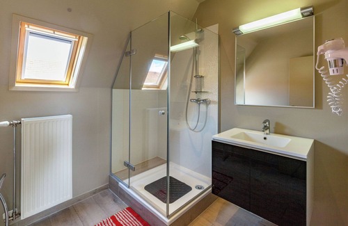 On the 1st floor: (bedroom(double bed), bedroom(double bed), bedroom(3x single bed), Bedroom with bathroom(single bed, double bed, shower), bathroom(shower), bathroom(shower), toilet, toilet)