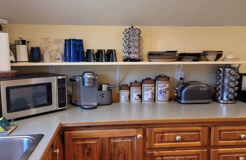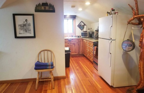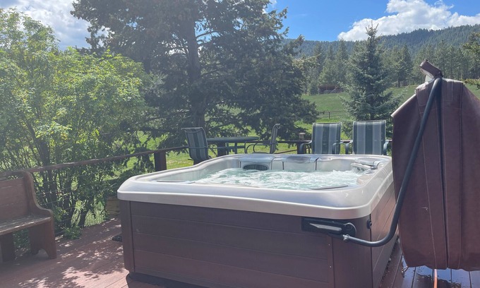 Our incredibly charming, fully self-contained 1000 sq ft private rural guest home retreat sits over our garage in the middle of 20 lush acres bordering US Forest Service land and is located just minutes from Lost Trail Ski area, rivers, fishing, lakes and hiking (guests can hike into the forest straight from the property). It has the rustic quintessential Montana vibe + 360 degree views of mountains, pine trees & horse pasture. It features a queen size log bed with a super comfy mattress, 2 full sized futon (fits two adults) Franklin style gas fireplace, full Kitchen (with spices, oil, herbs, organic coffee, sugar and honey), bathtub/shower with shampoo, conditioner and soap in a pump bottle, two additional couches, WIFI, skylights & HD TV as well as access to a 5-person hot tub on the main house back deck with views of the mountains and horses! And when the chickens are cooperating, we will supply organic eggs with yummy bacon! Please let us know how many beds you need before hand. There are exterior cameras on the property