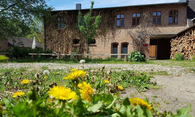 Welcome to the coach house at Mühlenbach in the town of Lychen, which is surrounded by 7 lakes. We converted the former coach house opposite the flour mill into a large holiday home. Old building structure has been preserved and in addition to the largely ecological construction, we also rely on renewable energies for the supply. Located in the center of Lychen, our large holiday home is ideal for nature lovers and active vacationers. How about slow down in the Uckermark? Discovering the Uckermark Lakes Nature Park during the day and cook together in the evening? The coach house has 4 double rooms and a single room, a bathroom (shower + toilet), an extra shower and single toilet on the upper floor, a well-equipped large kitchen with a buller oven and a "good room" with a view of the mill brook. You will receive recommendations for your canoe, bike or hiking tours through the nature park or excursion tips for the Uckermark. Minimum stay 2 nights. Recommended arrival and departure days: Friday or Sunday