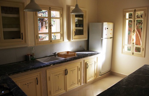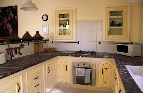 The house is decorated in a tasteful style with elegant traditional moroccan design elements and furnishings. It comes complete with bed linen and bath towels but not beach towels.