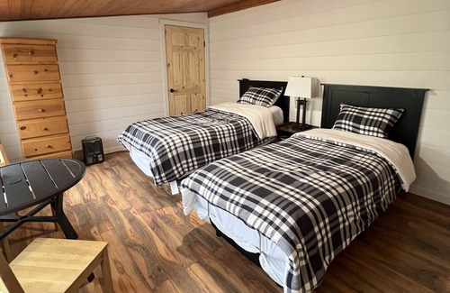 With vaulted ceilings and two wood burning fireplaces, our lodge comfortably