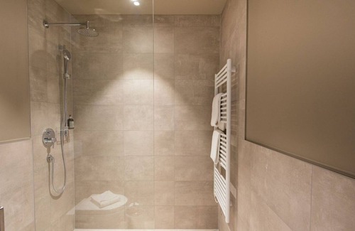 The spacious apartment is suitable for up to six people and has three bedrooms with luxurious box-spring beds, a living room with a cosy seating and dining area and three bathrooms with 3x rain showers and 1x bathtub. The fully equipped kitchen has a Nespresso coffee machine and tea making facilities, induction hob, combi microwave, kettle and dishwasher. A smart TV is available in the living room and bedrooms. The apartment is also equipped with a safe and Wi-Fi. You can enjoy the view from the furnished balcony or terrace.