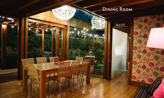 Our beautiful home features a spacious, modern kitchen, dining room, 6 bedrooms, and 2 bathrooms. The large garden has a heated and covered BBQ area, and there is parking within the property for up to four vehicles. Free WiFi is also available.