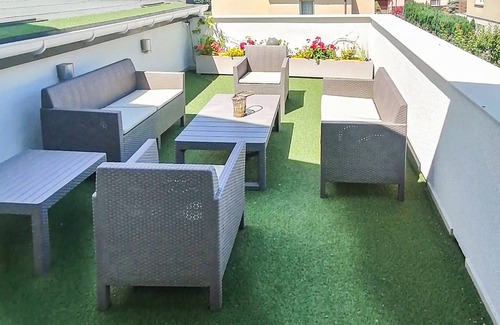 From the large roof terrace, you can admire the surroundings and make plans for the coming days of your holiday.