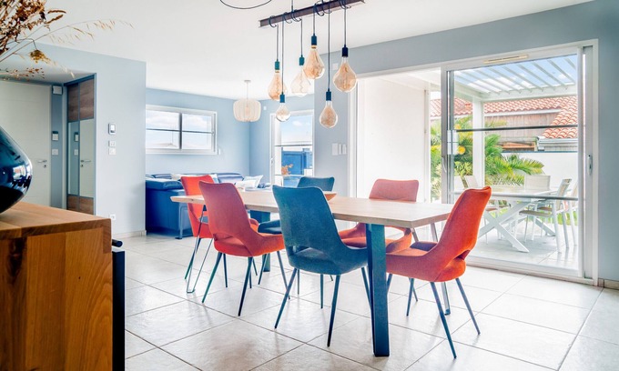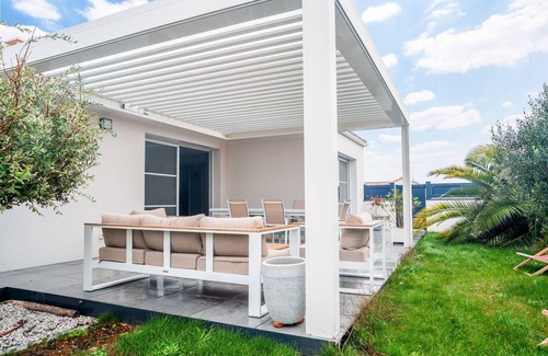 Large modern house for 6 - Garden is located in Saint-Vincent-sur-Jard. Large modern house for 6 - Garden provides accommodation, featuring TV, Security/Safety, Wellness Facilities, among other amenities. This Ski Chalet features TV, Security/Safety, Wellness Facilities, to make your stay a comfortable one.