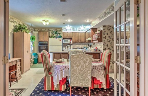 Nestled alongside a 300-acre horse farm, this Danville vacation rental is a nice place to get away from the hustle and bustle of everyday life. The charming 2-bedroom, 2-bath apartment features a fully equipped kitchen, eclectic decor, a large cable TV, and ample garden space to relax and enjoy the view. Located just minutes from downtown, you'll be close to a wide range of activities including the annual Kentucky State BBQ Festival, Constitution Square, and Old Fort Harrod State Park! Book now.