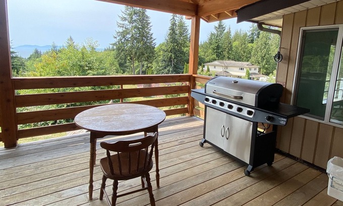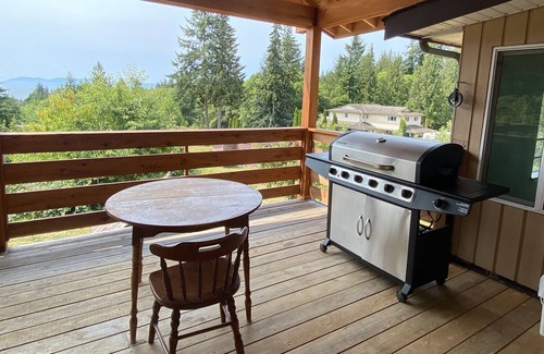 3 bedroom 2 bath home with a BBQ. Large deck and about 1900sq ft of space is all yours on the upper level of this Roberts Creek home. Very quiet and peaceful, view of the ocean and large yard. The bottom is shared with the home owner but you will not be bothered. Basic necessities provided, shampoo, soaps, spices etc