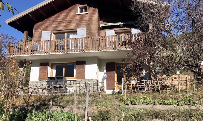 Large T2 with garden, south facing, panoramic mountain view, located on the ground floor of the chalet (10 mins walk from the city center).
