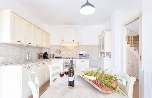 The kitchen adjacent to the living room is the centerpiece of the villa and is connected to the large covered and furnished veranda where it is possible to eat all together in the cool of summer.