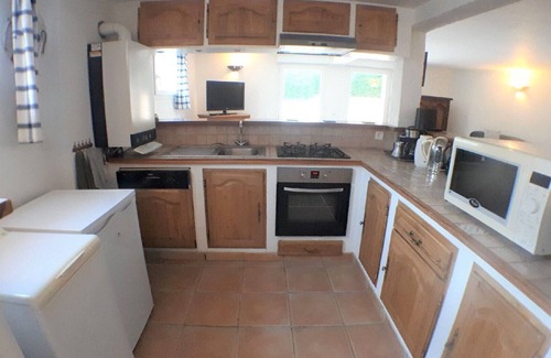 A living room, a dining area, a sofa bed, and a BBQ grill are featured at this 8-bedroom, 4-bathroom rental. The kitchen is equipped with an oven, a stovetop, and a refrigerator, as well as a coffee maker, an electric kettle, and a microwave.