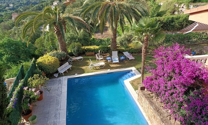 The villa is available all year round. Accommodation planned for 6/7 people in 3 bedrooms. Breathtaking panoramic view of the bay of Palamos and Sant Antoni de Calonge. Flowered and very well maintained garden. Central heating. Chimney insert. Covered summer kitchen with fan, pizza oven and barbecue. 2-seater hammock at the BBQ.