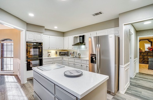 Nestled in the Texas Hill Country in the quaint town of Grandview, this 3-bed, 2-bath vacation rental home offers the perfect place for relaxation and quality time with loved ones. Start your morning with a hearty breakfast in the kitchen, then unwind on the deck or play cards in the game room. For more excitement, go hiking at Cleburne State Park or spend a thrilling day at Six Flags Over Texas!