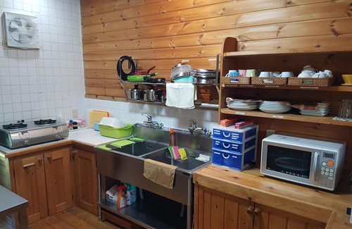 | GeneralElectric kettle, Fireplace, Number of bedrooms - 1, Toilet paper, Stovetop, Shared bathroom, Toaster oven, Rice cooker, Garden view, Number of living rooms 0, Toaster, Bed count minimum 6, Housekeeping on request, Coffee/tea maker, Microwave, Number of bathrooms - 1, Eco-friendly cleaning products, Cookware, dishware, and utensils, Paper towels, No cribs (infant beds), Cleaning supplies, Shared outdoor bathroom, Freezer, Oven, Bed count maximum 6, Refrigerator |