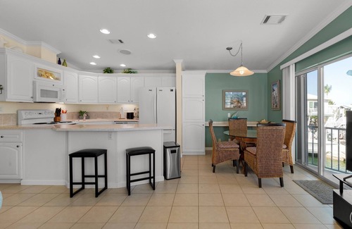 *Open Kitchen & Dining: The fully equipped kitchen opens to a welcoming dining area that comfortably seats up to 4 at the table and 2 more at the bar, perfect for family meals or entertaining friends.
