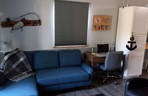 KY Lake, Jonathan Creek side. Enjoy a peaceful stay within walking distance to pool & mini golf. Qtr Mile from public ramp, we offer a boat slip as well as an add'l option. Beach site, playground, fishing, walking trails, near boat rentals. Serenity awaits you. Tucked away just enough, but close enough to fully enjoy what all the area has to offer for family fun. Fishermen and women will more than enjoy!
