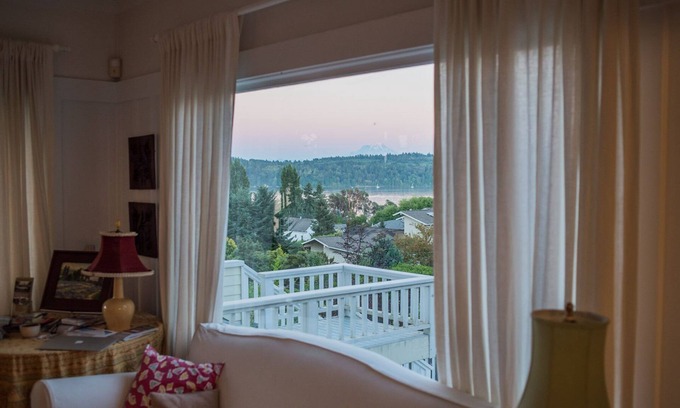 Lavender Hill Farm is well known on Vashon Island for our U-Cut lavender field and farm store, open from mid June through early August. The property has 1000 lavender plants and more than 15 varieties, as well as beautiful gardens and stunning views. Come vacation in this tranquil setting in a 1930's farmhouse, thoughtfully updated and spacious enough for a reunion of friends and family. The long farmhouse porch is the perfect spot for morning coffee overlooking the gardens, fields, Quartermaster Harbor and Mount Rainier. Listen to the bees as you stroll through the fields and stroll two blocks into the town of Burton for supplies and coffee, take a walk in Burton Acres Woods, wander the Outer Quartermaster Harbor beach or rent kayaks or stand up paddle boards at Jensen Point.