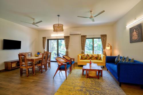 11 miles from Basilica of Bom Jesus in Candolim, Lavish 2BHK Apartment with Swimming Pool in Candolim provides accommodations with access to an indoor pool. The air-conditioned accommodation is 10 miles from Chapora Fort, and guests can benefit from on-site private parking and complimentary Wifi. The accommodation offers an elevator and daily room service for guests. Offering a balcony and garden views, the spacious apartment includes 2 bedrooms, a living room, flat-screen TV, an equipped kitchen, and 2 bathrooms with a shower. For added privacy, the accommodation has a private entrance and is protected by full-day security. Guests can relax in the garden at the property. Church of Saint Cajetan is 11 miles from the apartment, while Thivim Railway Station is 13 miles from the property. Manohar Parrikar International Airport is 17 miles away.