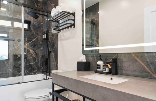 Enjoy the beauty of our stunning 3-bedoom + office, 2.5-bath main home + 2-bedroom, 2 bath casita (ADU) getaway! Drift along the peaceful lazy river, unwind in the hot tub, find balance on our spacious yoga deck. Stroll through the zen garden, see a movie or gather around the cosy fire pits for intimate evenings.