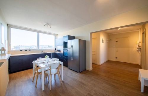 This charming 92 m² apartment in Agen can accommodate up to 6 people. Located on the 4th floor (with elevator), it comprises an attractive 30 m² living room, a fully-equipped kitchen, three bedrooms and two bathrooms (with shower). Wifi (fiber optic), bed linen and towels included, we're waiting for you!