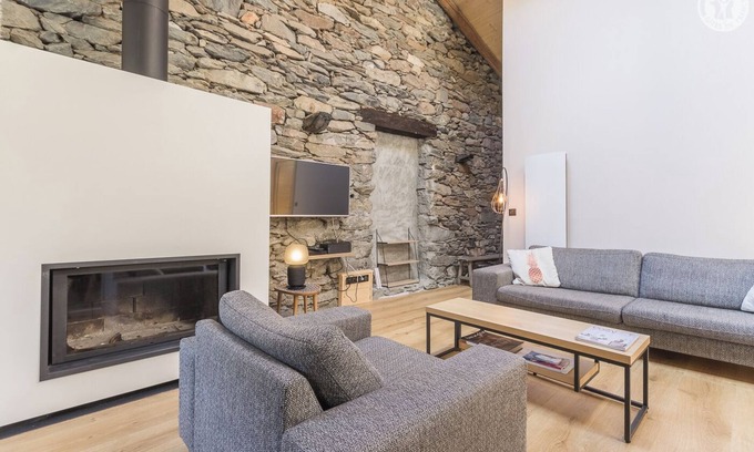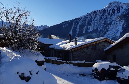 Gîte with unusual volumes! Entrance into a large living room: kitchen open to the living room with fireplace. 1 bedroom (1 double bed 160 x 200 cm + 1 single bed on the mezzanine) with shower and sink. 1 bathroom (bathtub) with washing machine and dryer. 1 separate toilet. On a half-level: dormitory arranged in 3 alcoves (1 double bed, 2 single beds 90x200, 1 single bed 90x200) + 1 bedroom (2 single beds 90x200). Pleasantly shaded private terrace with panoramic views of the mountains. Public parking in the hamlet. Chalet located in a truly green setting with magnificent mountain views. You are here at the gateway to the Vanoise National Park and 10 km from the Orelle cable car to discover the 3 Valleys ski area. Many other reference ski areas are nearby (Aussois, La Norma, Valfréjus).